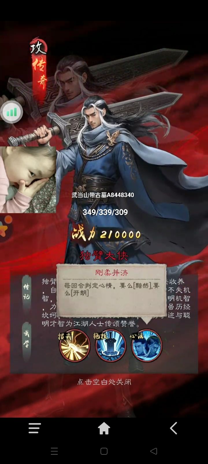 独臂大侠红色侠客t0推荐:作为红色侠客。基础战斗力21万堪比神话侠客阳顶天。攻击属性两种状态,一个攻击120+眩晕。一个攻击180。攻控兼备+图3缘分侠客牛批。优先打破先阶段可玩性阵容。让玩家有更多阵容选择。缺点花钱。建议:本身先阶段新萌少。宣传游戏力度不够。如果一味圈会流走先阶段零磕玩家。希望宣传部增加宣传力度。在个个平台引流增加新萌。希望策划增加白嫖活动。让白嫖也能选择大侠阵容。作为一个接近2年的玩家。希望游戏一路长虹。5年一个规划。十年一个历程。望众君一路同行。