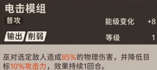 巫的普通攻击可以降低敌方的攻击力,效果持续一回合。