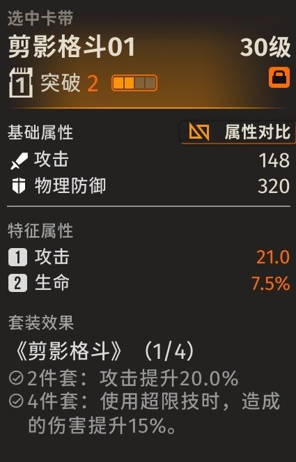 龙井的卡带推荐——剪影格斗无疑是最好的选择!达成两件套时,可以使攻击提升20%,四件套时可以使其在使用超限计时造成的伤害能够提升15%!培养到后期,简直就是战场收割机!