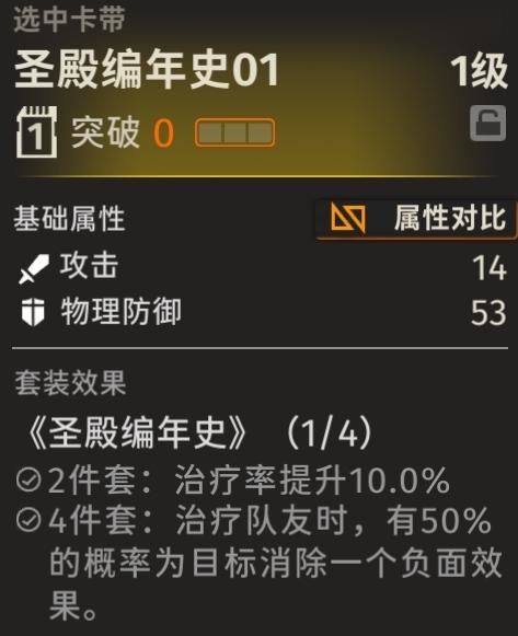 圣殿编年史一定是很好的选择,两件套时可以提升自己10%的治疗率,四件套时每次治疗队友都有50%的概率为队友消除一个负面效果