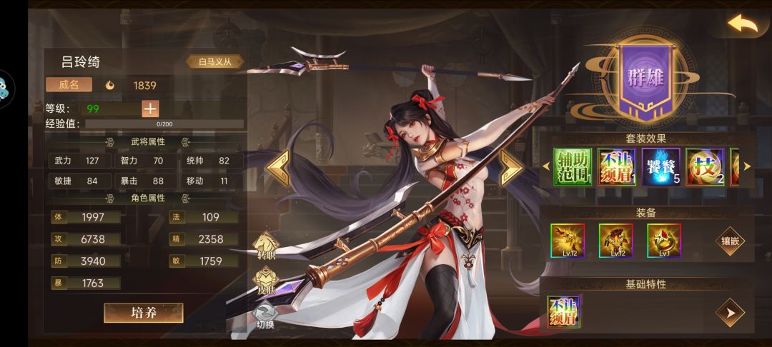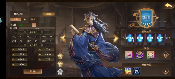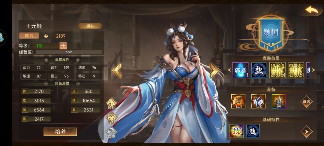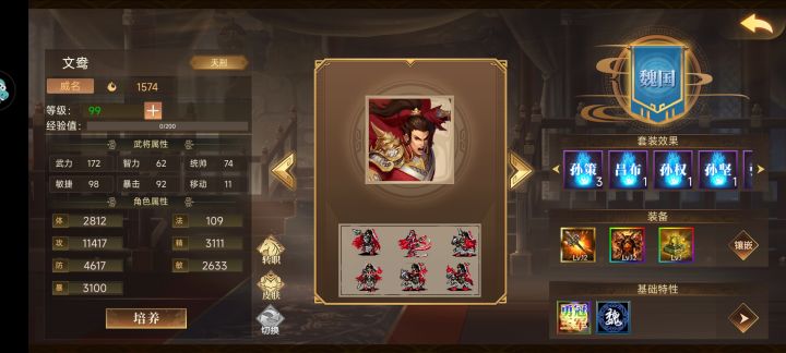 人员配置王元姬➕任意多动武将即可,主要靠王元姬输出没啥需要注意的比较简单。具体人员配装主力如图所示。有啥配啥,不要求相同,除王元姬之外。尽量多配出多动,与提高移动效率方便节省回合,破盾武将也是多多益善。