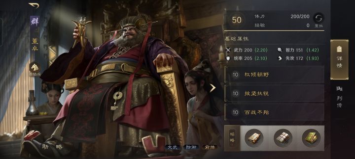 董卓战法:权倾朝野+披坚执锐+百战不殆。
