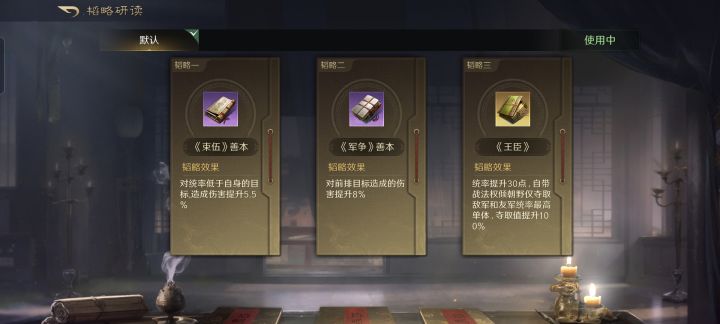 韬略库:束伍善本+军争善本+王臣(专属)。