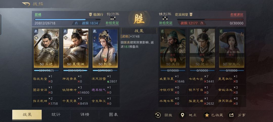 在此特别鸣谢游戏ID名为“晨曦”的朋友,给本文提供了宝贵的创作素材。他的夏侯渊、乐进和甄洛摆出钩形阵,只与对面的关羽、赵云和甘夫人交战两个回合,就几乎锁定了胜局,而且是夏侯渊亲自击溃了关羽!当中暗藏了哪些玄机和值得借鉴的搭配心得,且看下文分解!