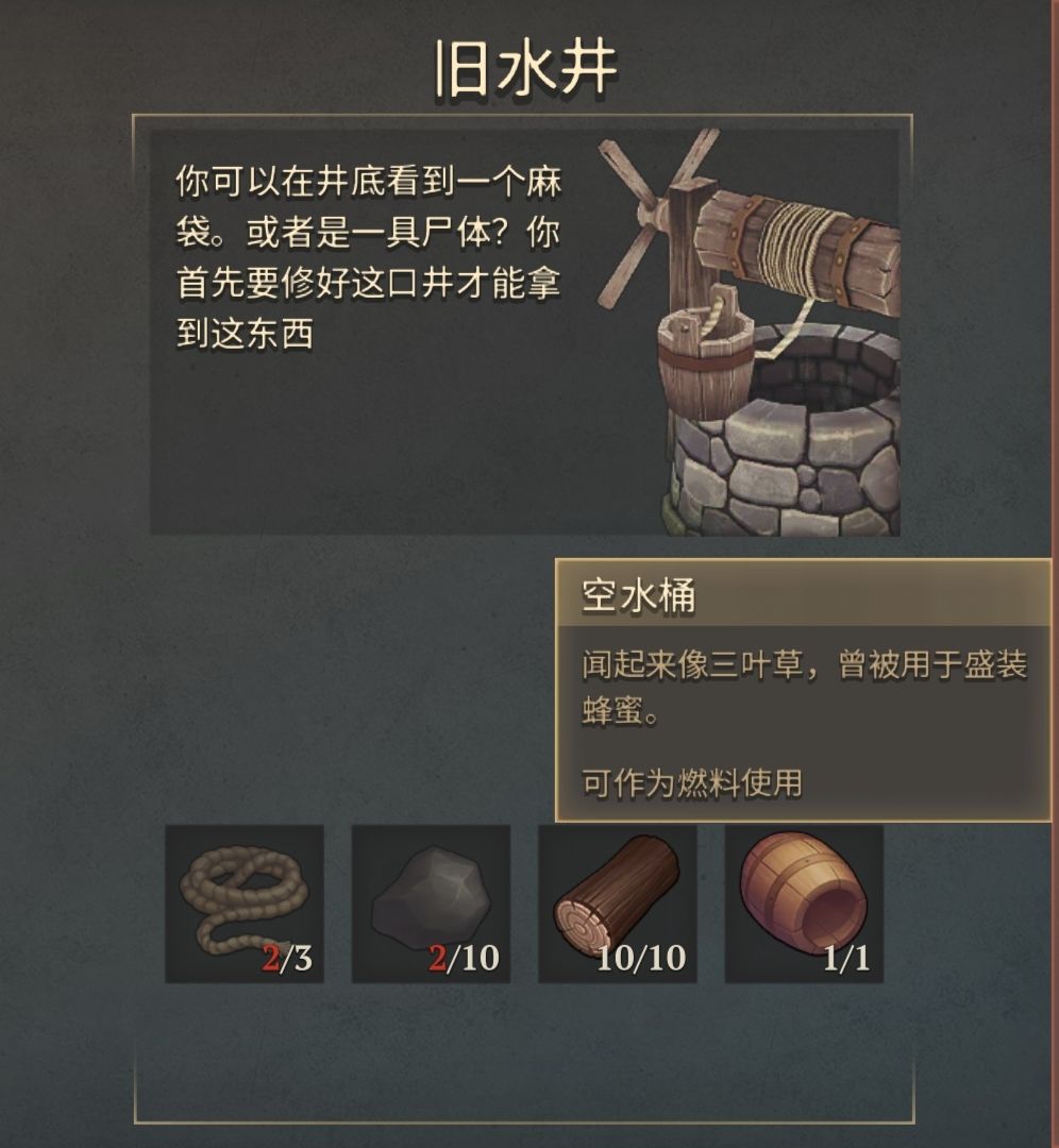 需要3绳子+10石头+10木头+1蜂蜜空桶,地图上基本能收集全。