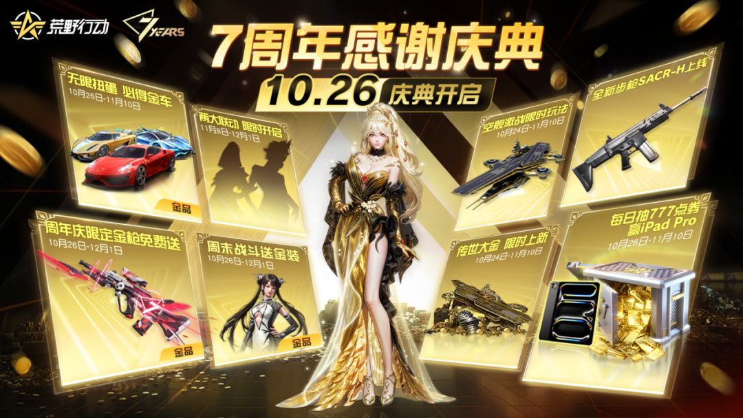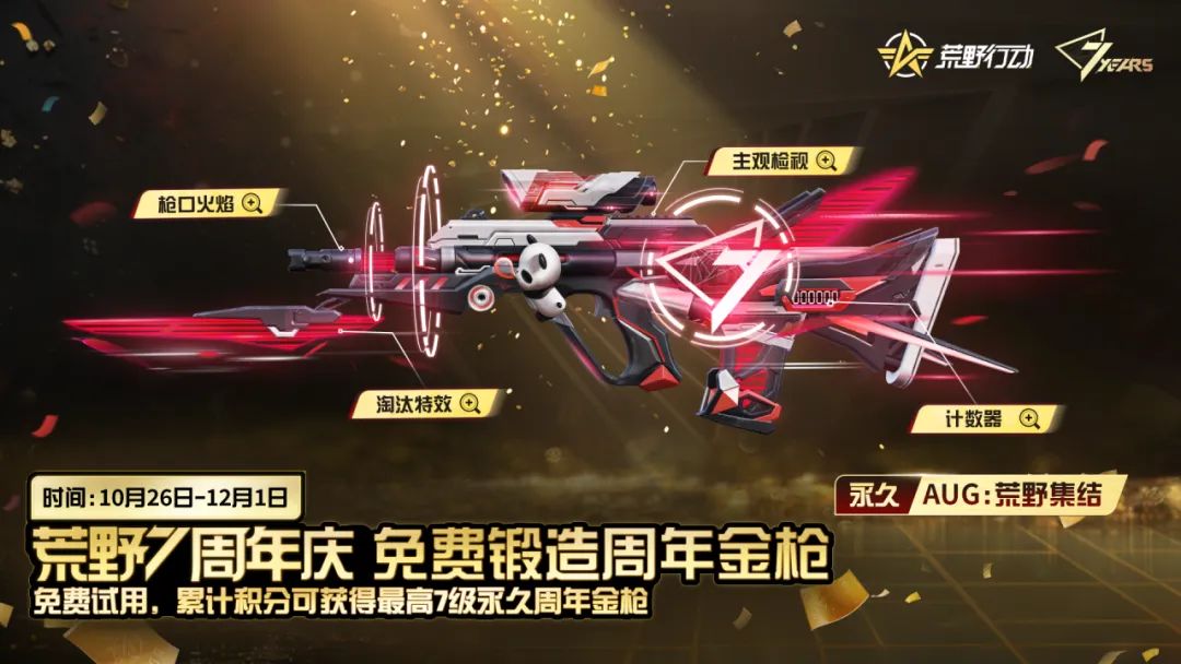 7周年限定金枪【AUG:荒野集结】,累计积分即可免费获得最高7级永久周年金枪!