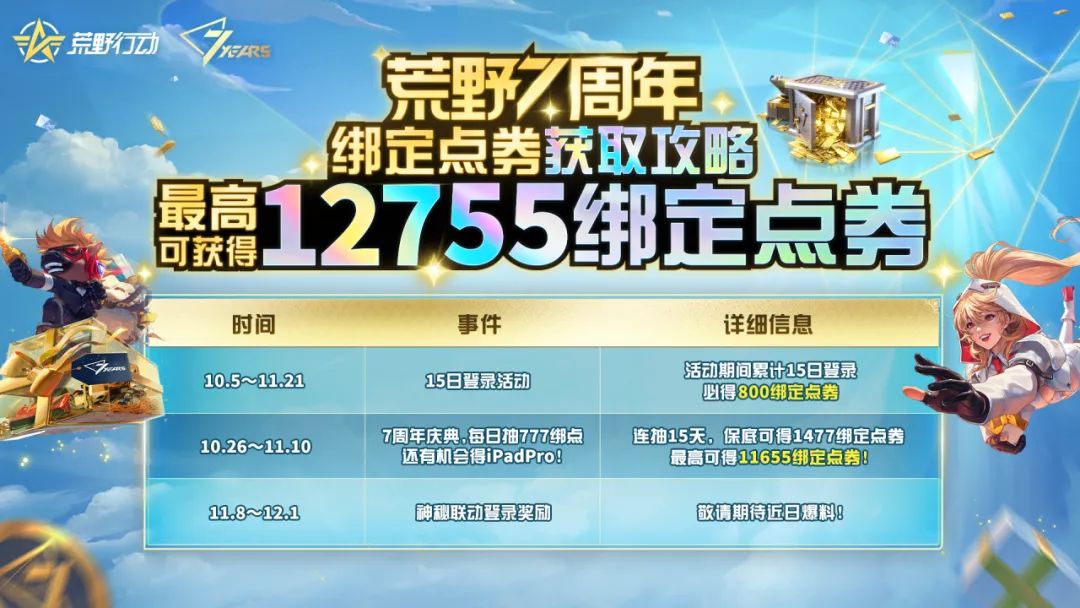 10月26日-11月10日,777绑点连抽15天,最高可获得11655绑定点券!