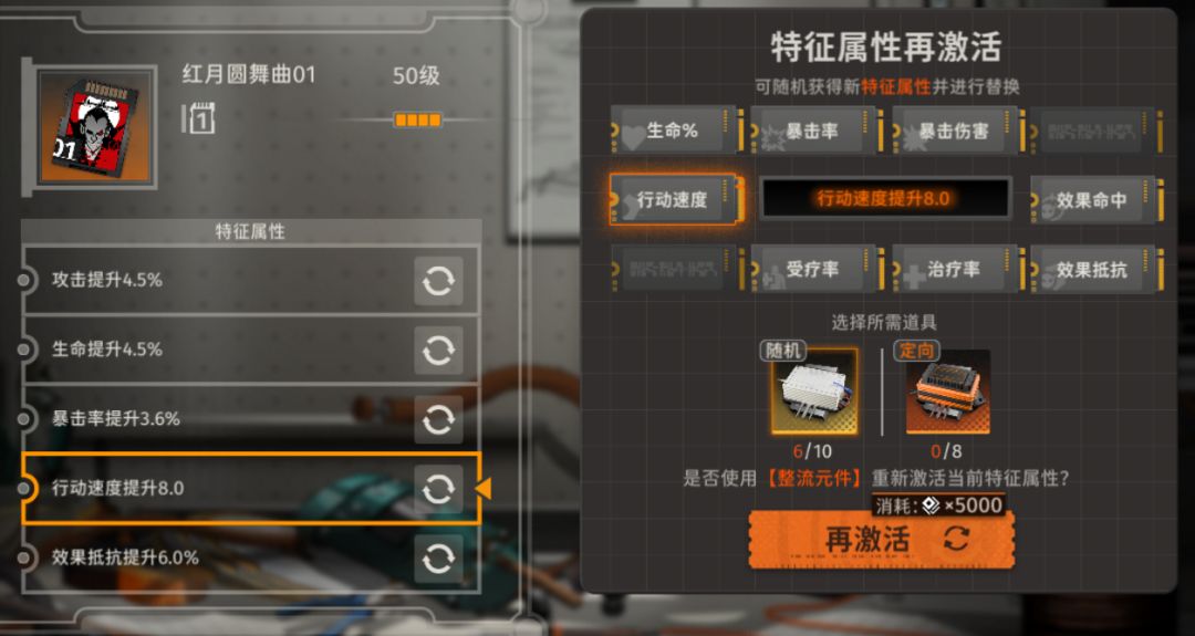 (这里刷新的材料不够了,要当主c,你们都要点——攻击(第一格),暴击率(三四五格),暴击伤害(三四五格),行动速度(第二格))