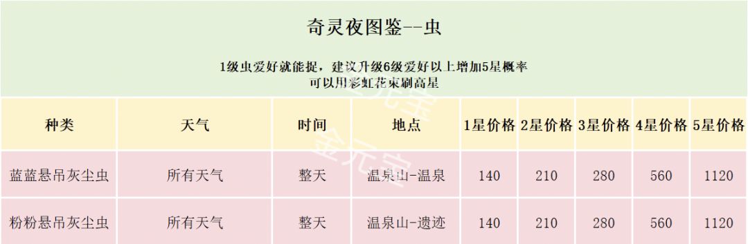 奇灵夜第三周新出2种虫图鉴攻略点位图价格