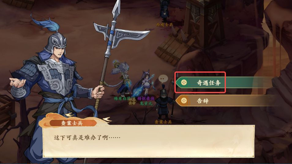 1、前往牧野战场如图所示处,与查案士兵对话,领取奇遇任务