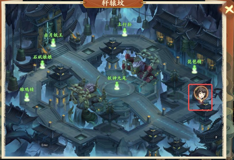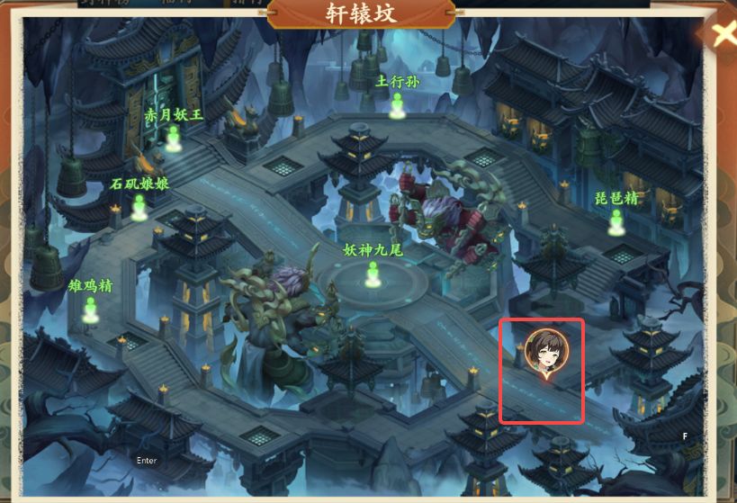 2、前往九幽冥界如图所示处,与狐妖机关箱子对话