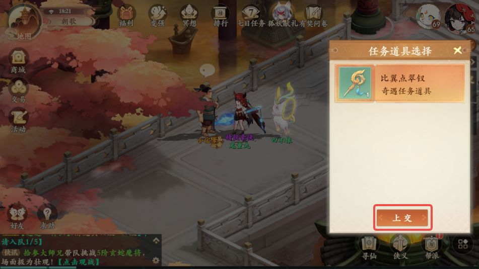 1、前往朝歌如图所示位置与小宝对话,领取奇遇任务