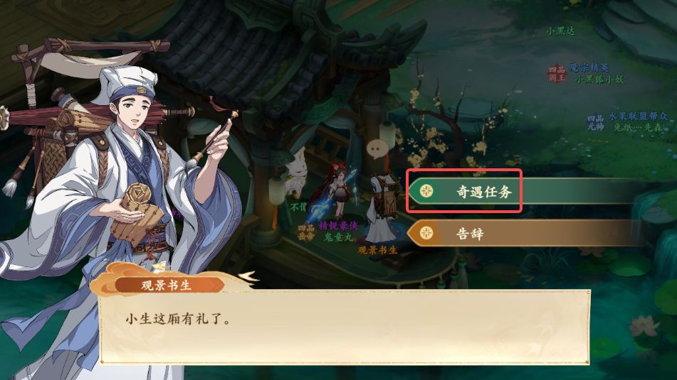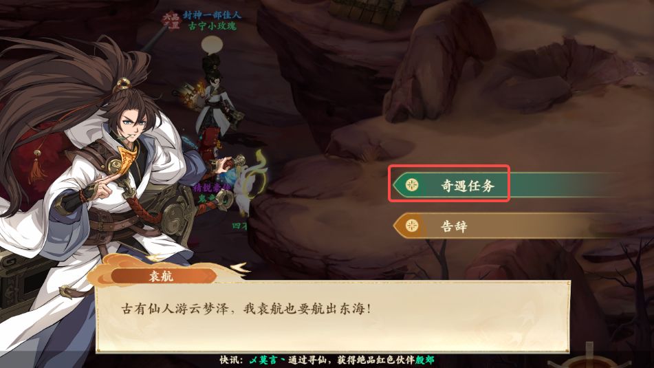 1、前往西岐酒楼老板处与其对话,领取奇遇任务