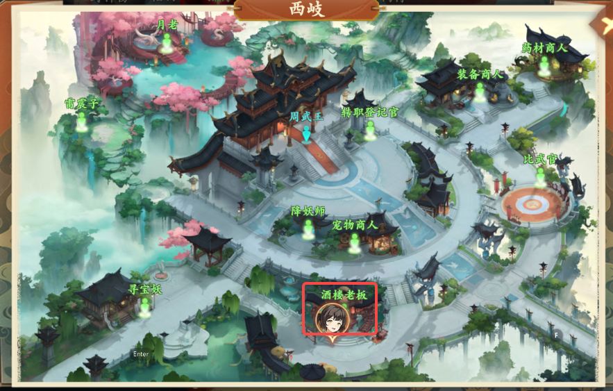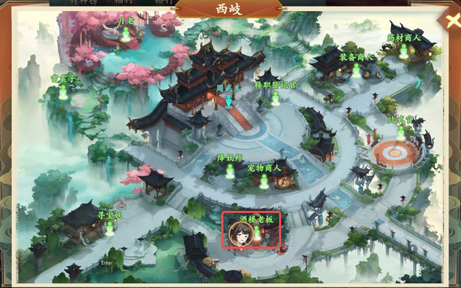 4、对话结束后前往西岐酒楼老板处,购买琼华酒