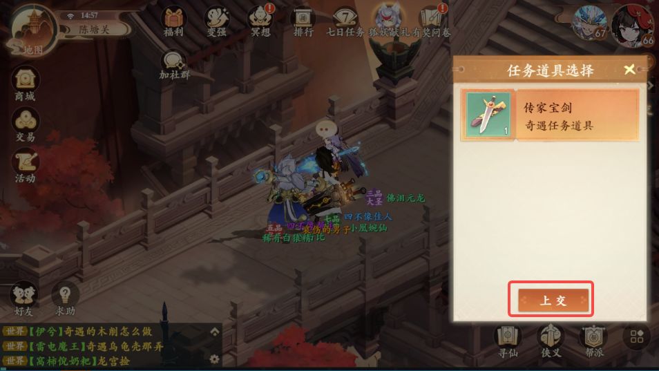 1、前往陈塘关如图所示处,与陈塘关百姓对话,领取奇遇任务
