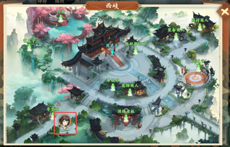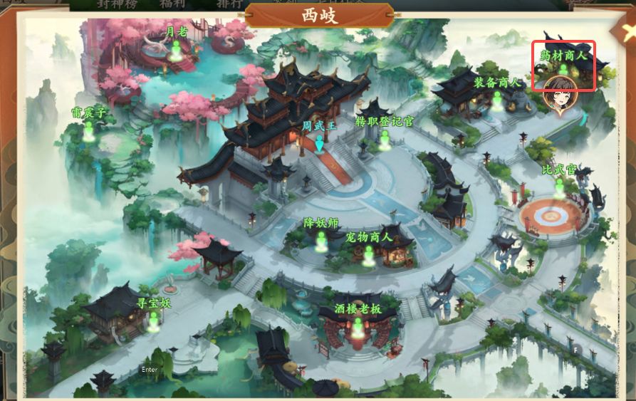 4、对话结束后前往西岐如图所示月老处与月老对话,对话结束后获得比翼点翠钗