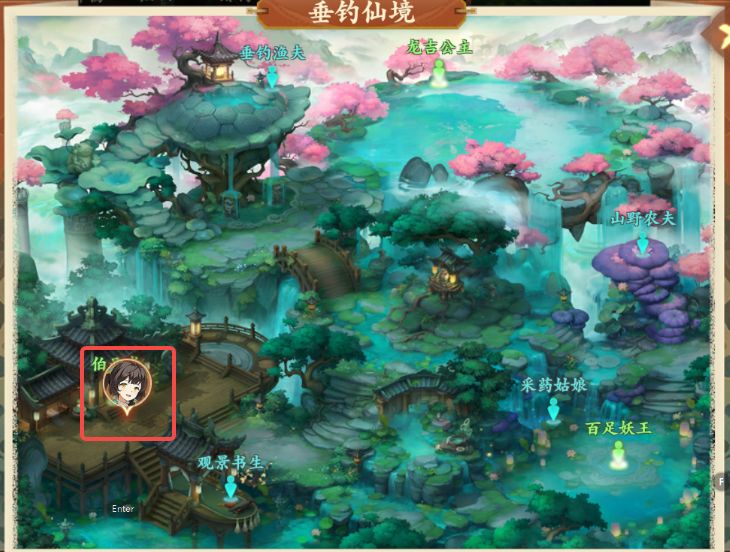 4、对话结束后前往垂钓仙境如图所示处拾取白芷