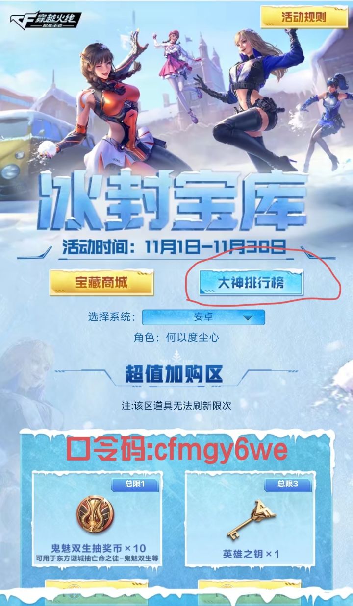 11月最强福利冰封宝库最新口令码:cfmnqd58