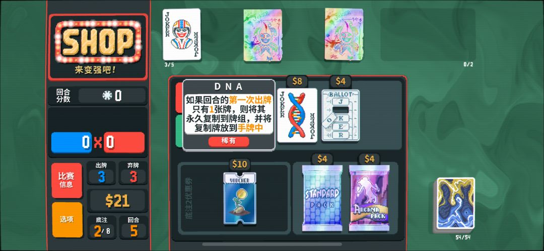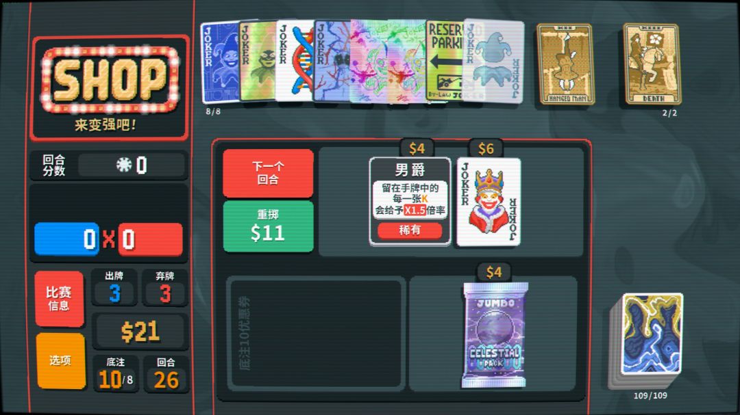 ③重点来了(敲黑板),选择跳过盲注获得下一家商店免费(图三),(图四)先使用商店里的幻灵小丑牌获得头脑风暴,再用附加1.5倍率,最后选择下方幻灵包复制第二张头脑风暴