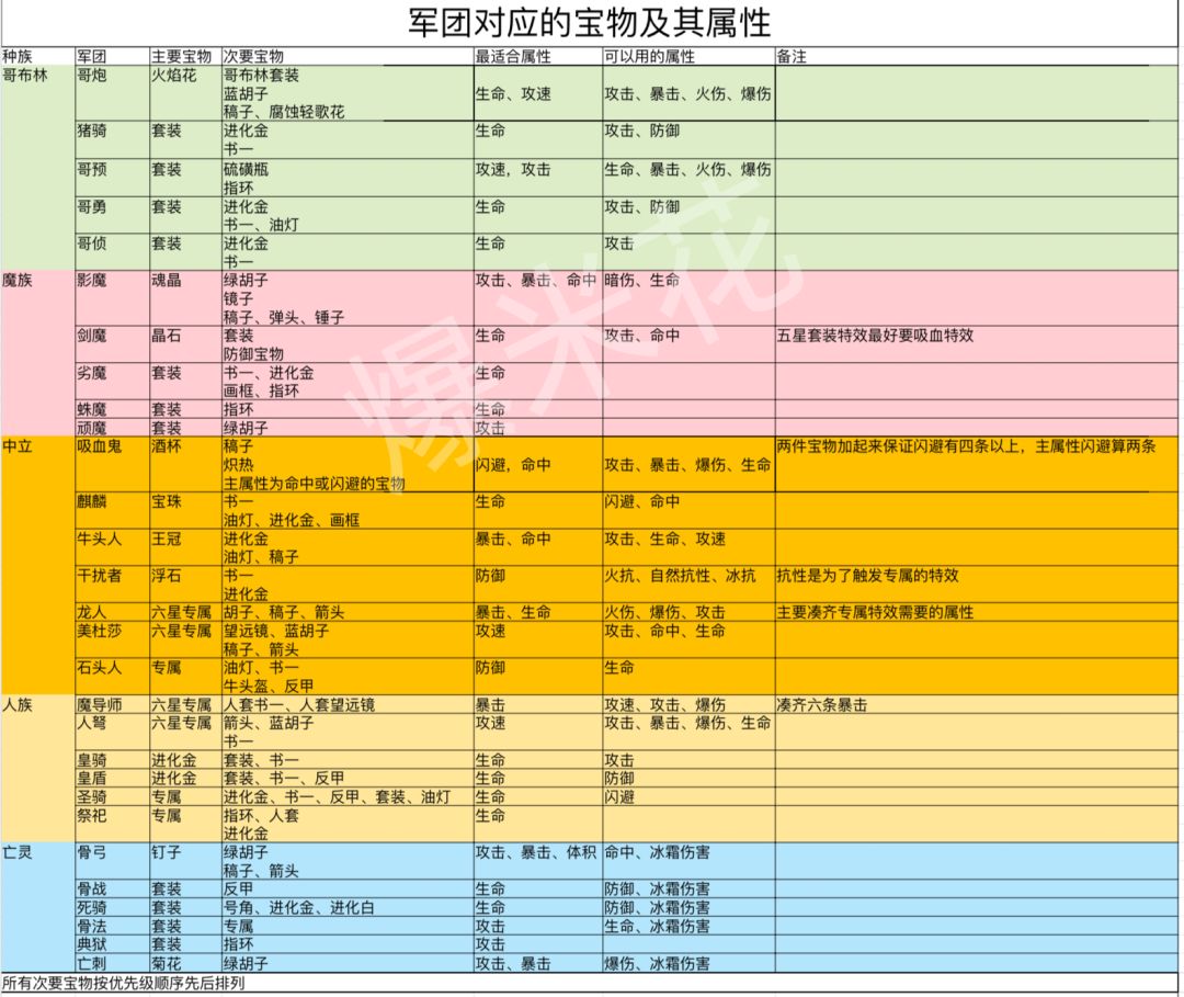 军团最适合的宝物及其主副属性的选择