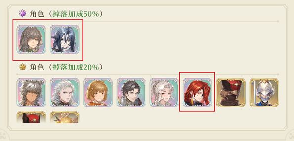 首先来看活动的推荐角色,红框角色为其中笔者推荐上场的角色。紫星角色(绿法、猎魔人)在活动的战斗中有高额加成,如有可优先考虑上场;金星角色则更多是为了玩家代行的方便,战斗中是没有加成的,其中的火法较为适应活动关卡(或者说关卡中部分敌人就是专门定制的)。此外,索爹、小姐头的表现也还行,红枪个人的体验一般,其他好用的角色欢迎在评论区补充。