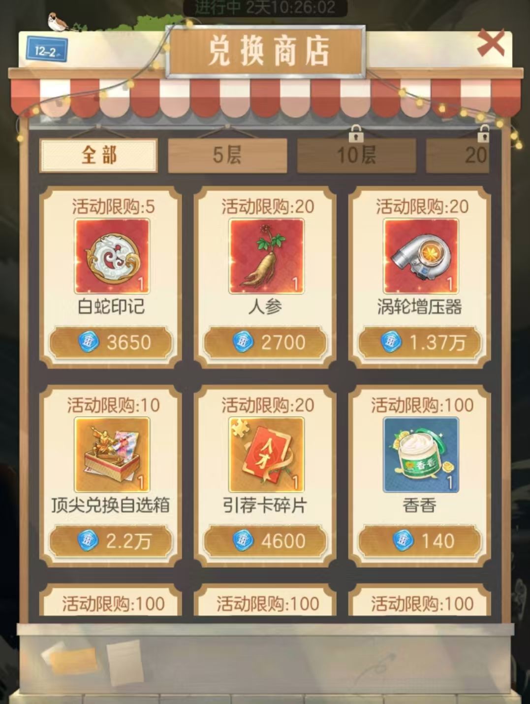 在塔中主动探索会获取积分,可以兑换诸多奖励,有全部商店初始全部解锁,和每到达一定层数才会开启的商店,两者限购次数互不相干。积分商店随着层数增高,部分商品价格有变化,可以优先从高层兑换商品,积分花费更少。