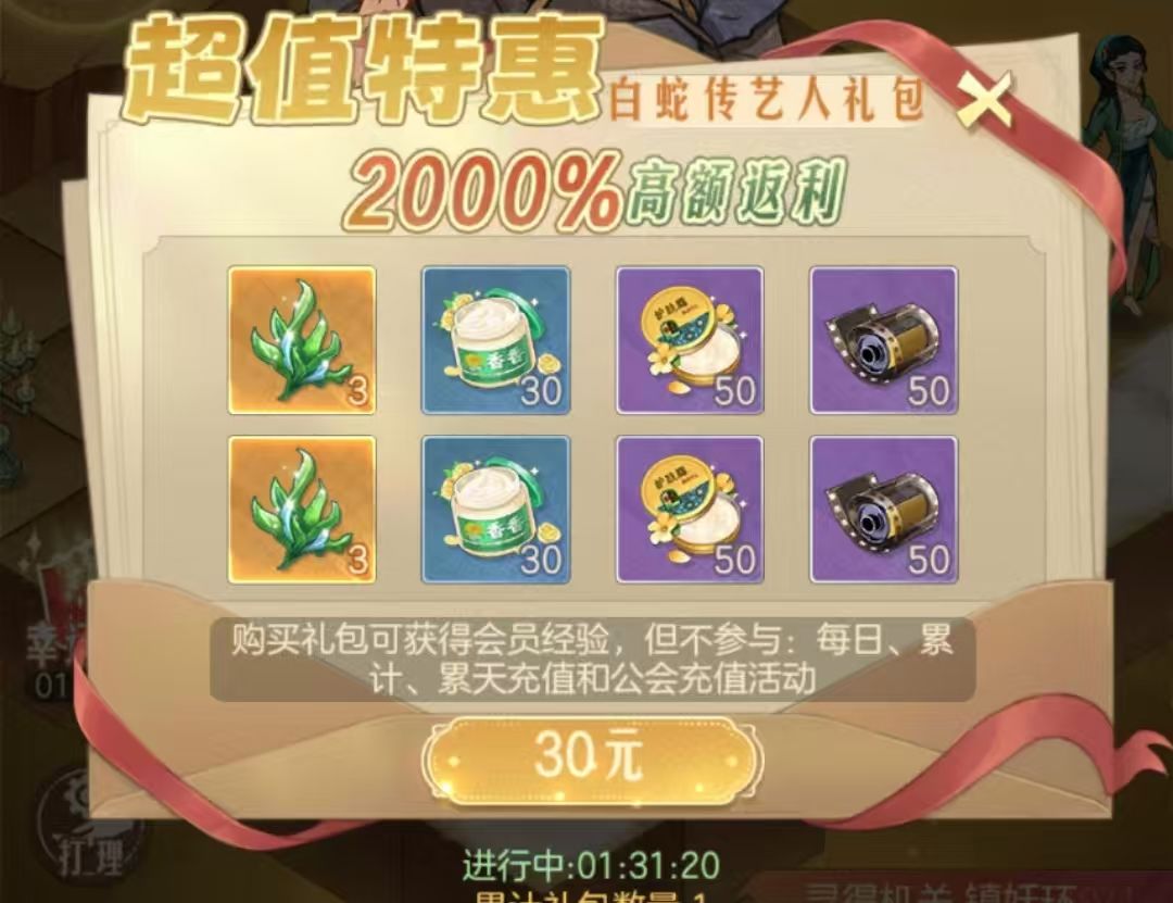 30元商城礼包与探索限时礼包对比