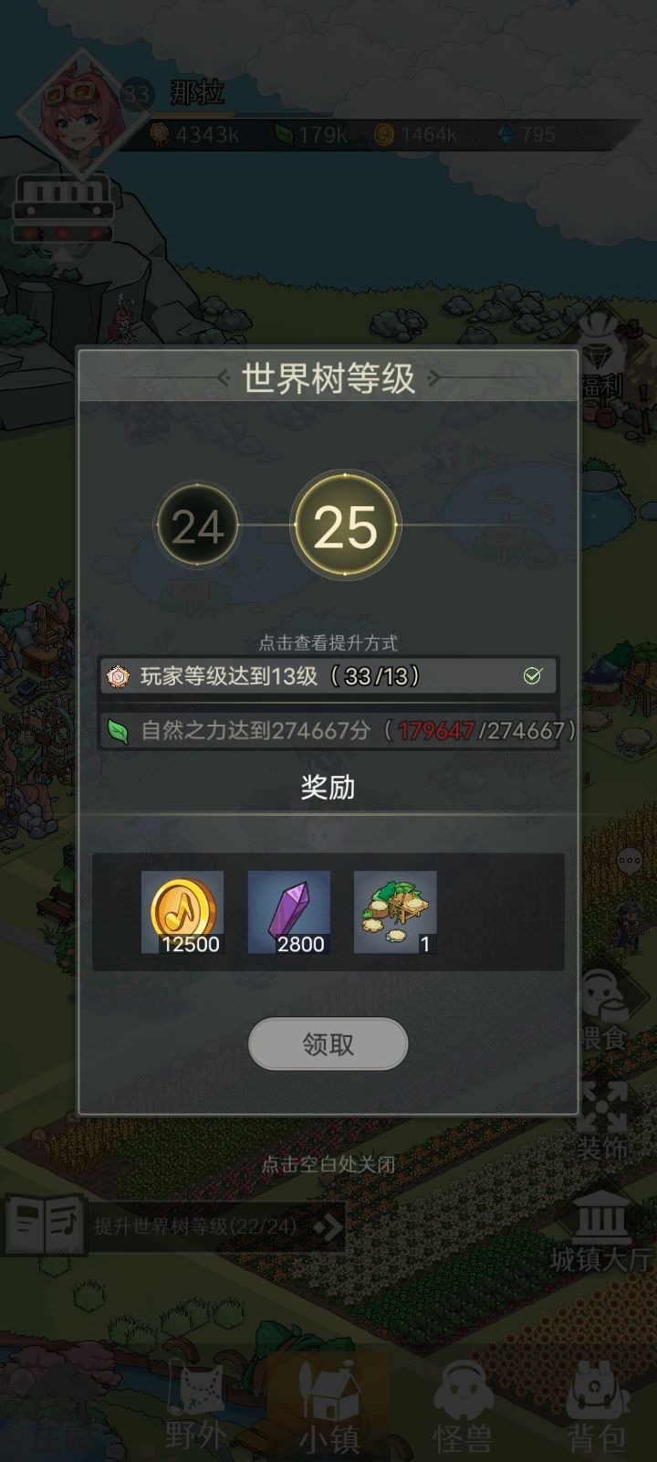 准备弃了,接下来的任务估计是修复帽子店饰品店,需要28级的世界树,需要的经验值太多了