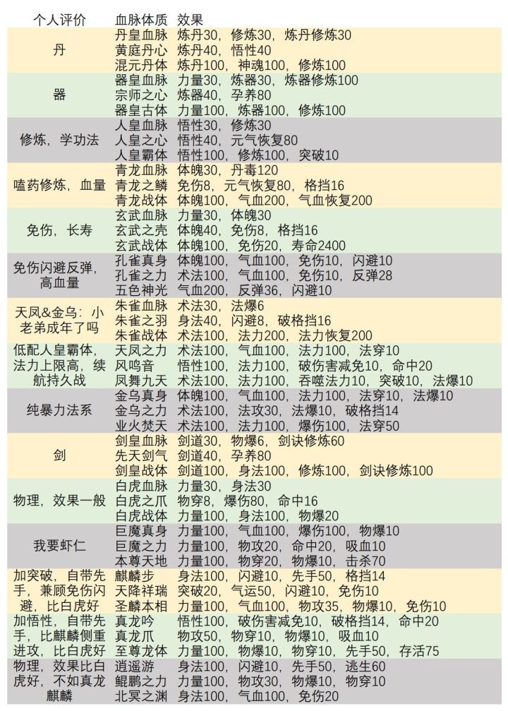 血脉效果,总体来说天凤削弱,金乌崛起,麒麟成为物理专属