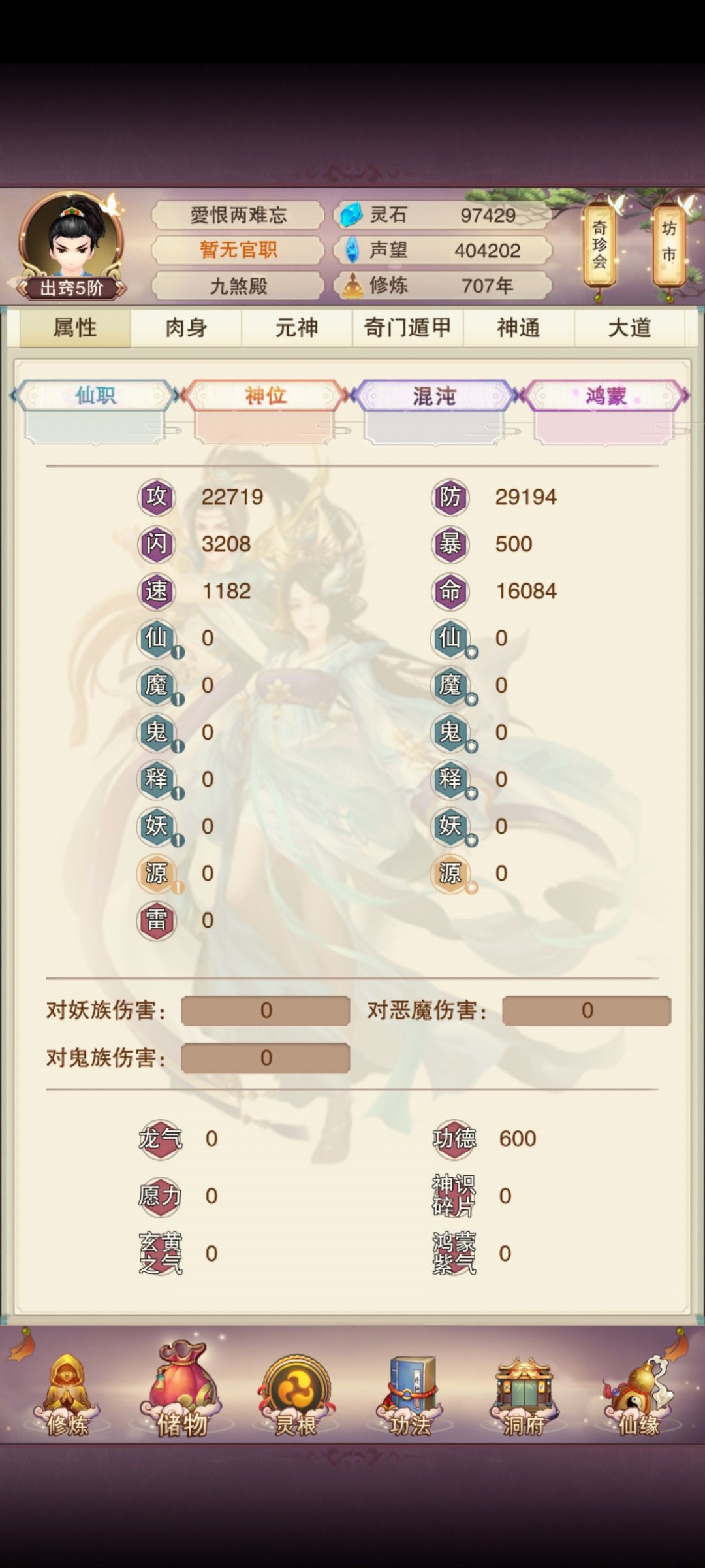 运气不错,二层三次刷新出了三本六星攻两本六星防,就差一本六星防了,洞府肉木马上39级了,准备明天39肉开始升聚灵139,追一追大佬们的步伐(虽然也追不上