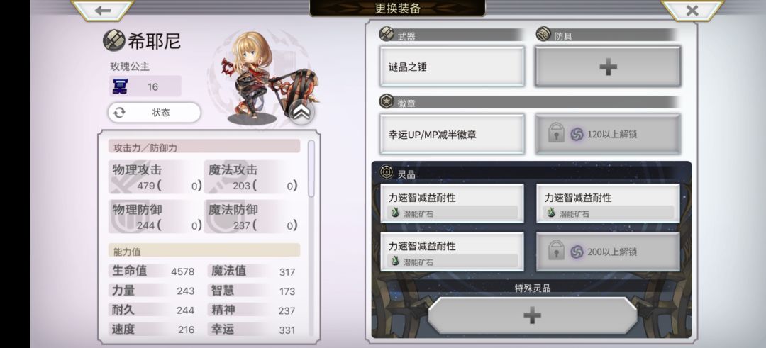 希耶尼可换其他角色(最好是冥角,不过反正伤害溢出无所谓),插3个力智速减益耐性就行了