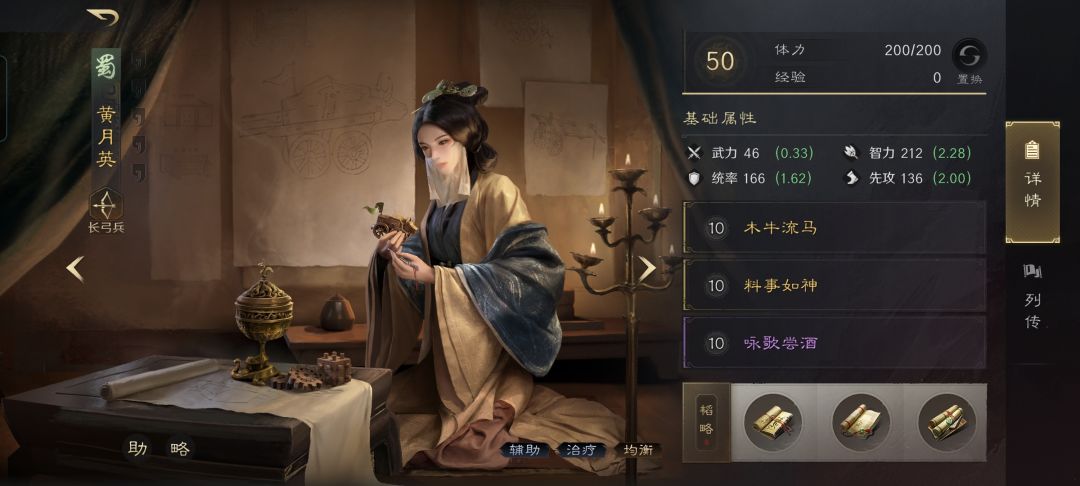 黄月英战法:木牛流马+料事如神+咏歌尝酒。韬略库:延气善本+宣威善本+机关术(专属)。长弓兵特性洞悉,专精点亮袍泽同心。偃月阵的前排,毫无疑问是董卓和庞德,他二人一肉盾一菜刀,配合得那叫一个天衣无缝!后排的黄月英更是堪称点睛之笔,兼顾了增伤、治疗、加防和群体技穷,她的专属金书还让本队伍统率值最高的董卓,额外具备了嘲讽。