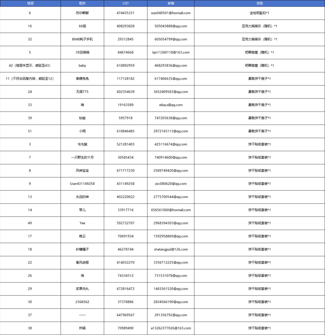8.活动结束后15个工作日内将会公布获奖名单,请到本帖查看开奖公告。获奖名单公示后,请获奖玩家于公示期提供相关获奖信息,逾期视为放弃奖励!