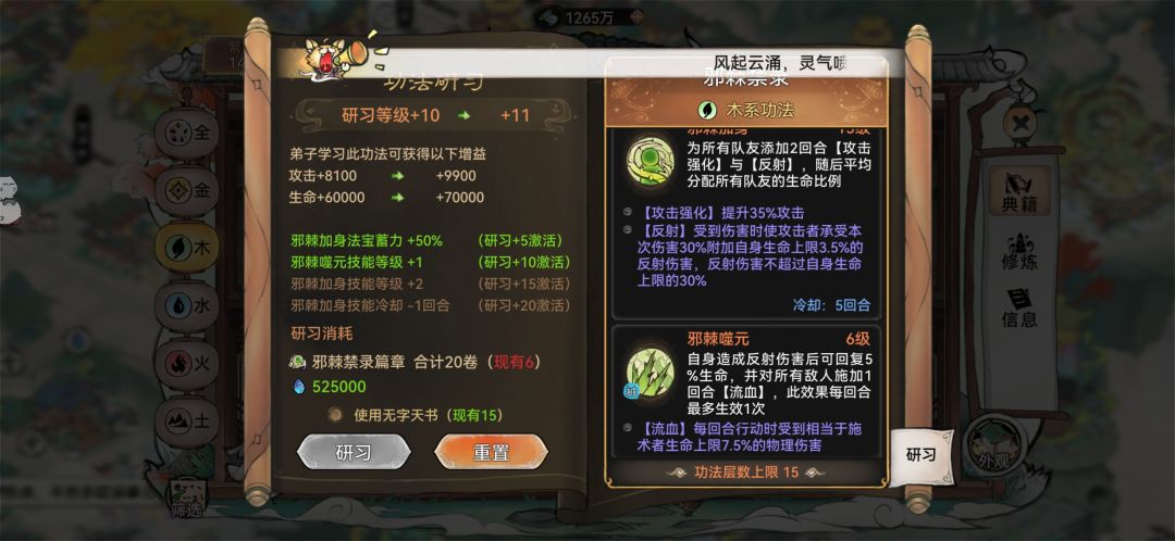 相对与速攻输出堆攻击、和尚输出堆防御,血队输出自然是堆血量,苍鲲作为纯血量加成伤害的功法还是很适配的