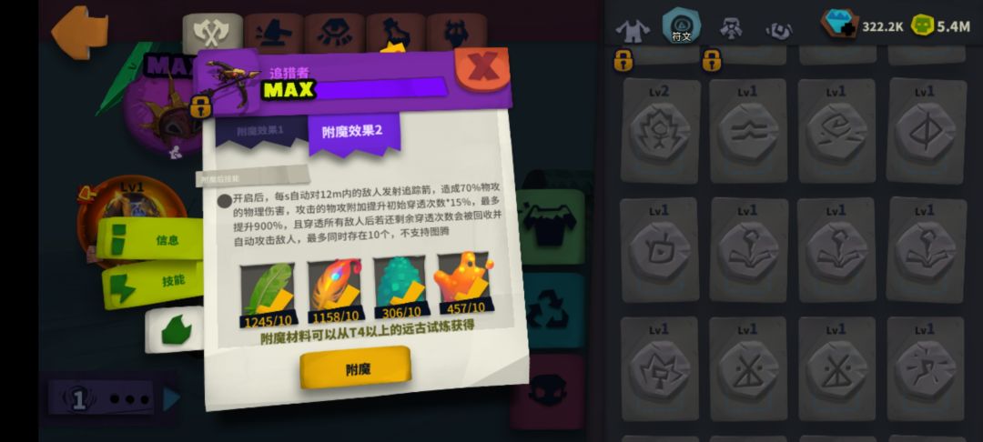 初始穿透数量×15%附魔二最高为900%,反向计算得900%÷15%=60穿透,所以咱们把穿透数叠到60便可以达到最高加成效果。