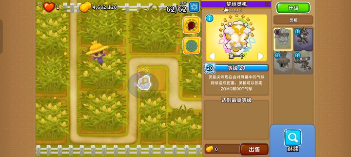 20灵机,moab气球过半用第二个技能。(蓝色图标的那个)