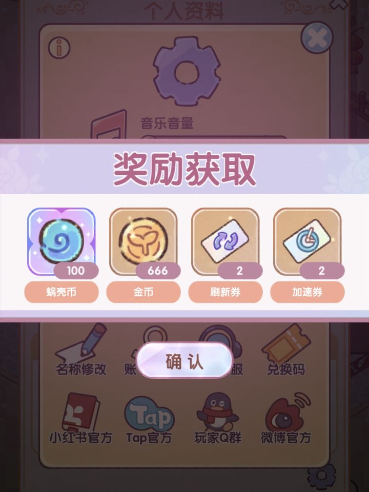 🌟内容:蜗壳币*100、金币*666、刷新券*2、加速券*2