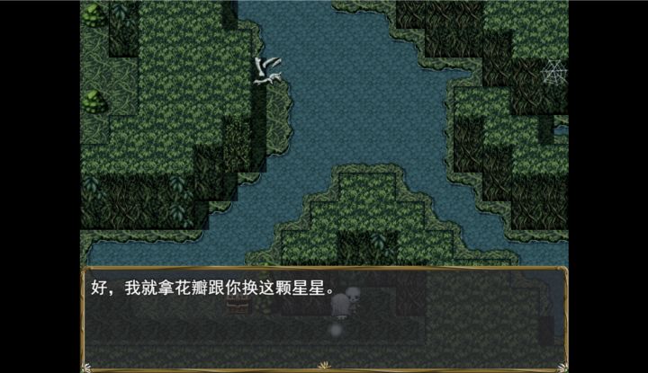 第四个花瓣在沉眠森林深处的右下角(如图一),有一个不会攻击玩家的骷髅,躲在一个宝箱的旁边,与它对话,会发现这家伙是个相当活泼有趣的幽灵,并且还有自己的名字:“老骨”。