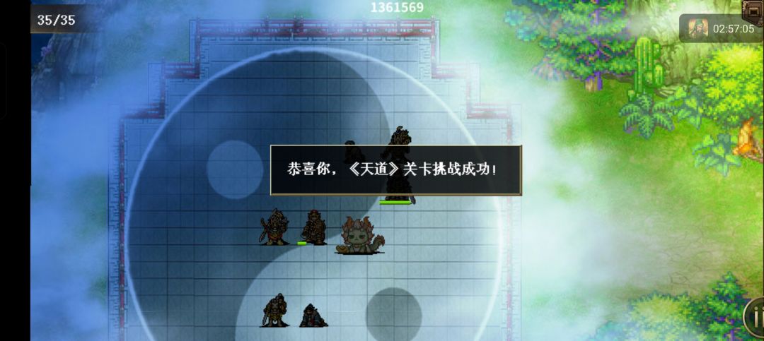 天道:战前浮生吃6-8个大经验果(吃少了本关不好打,吃多了下关不好打),四圣兽每回合随机状态,刷孙乾万人(三格范围解除状态)(合成里换),围着孙乾进军,七色老头按红橙黄绿青兰紫的顺序打,开始可以随便杀一个,把紫刷在右上角,打完之后诸葛和浮生远程磨杀那个不屈怪(在进门之前要打死,不然进门他会秒一个),水路有一小波伏兵,打完四圣兽后,往上走山路有麒麟,浮生(裨将)进门引怪让穷奇挨着其他怪(诸葛混乱,刘备群法,浮生天雷,糜芳狼牙箭,赵云龙胆枪,陈到手戟,水君关羽群法引导)