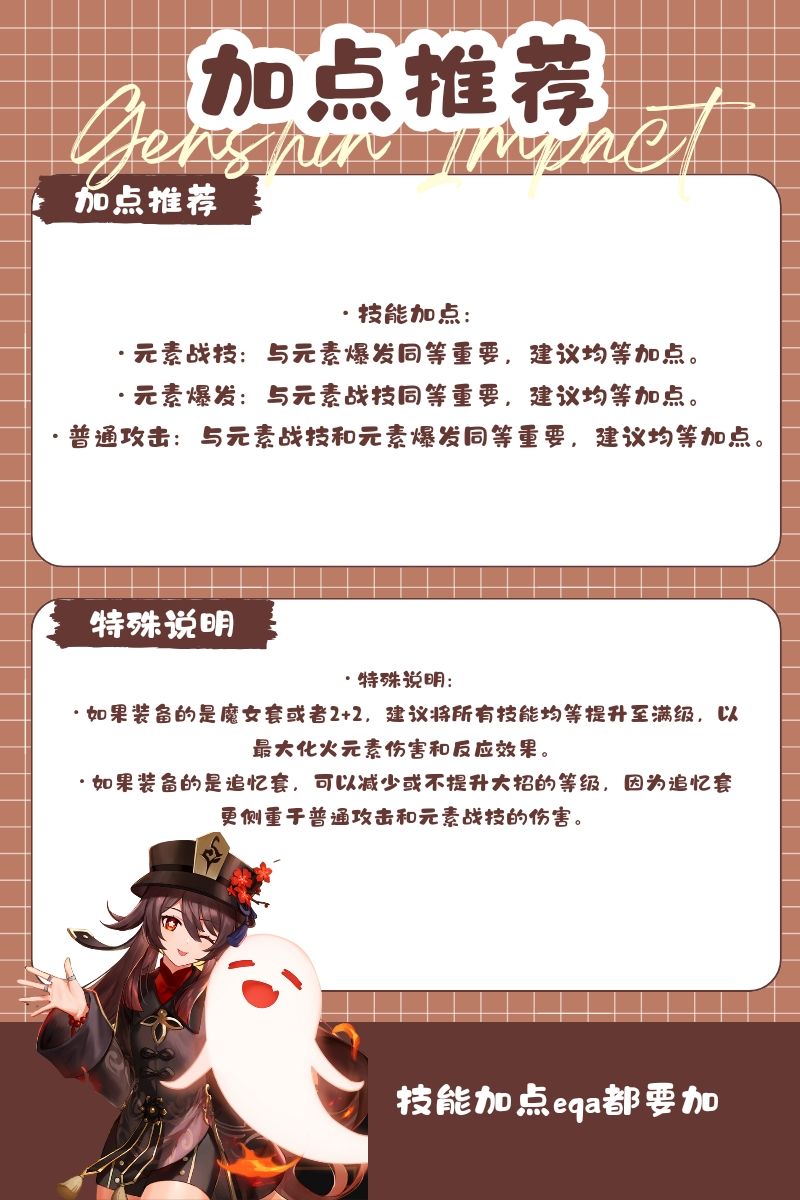 • 如果装备的是魔女套或者2+2,建议将所有技能均等提升至满级,以最大化火元素伤害和反应效果。