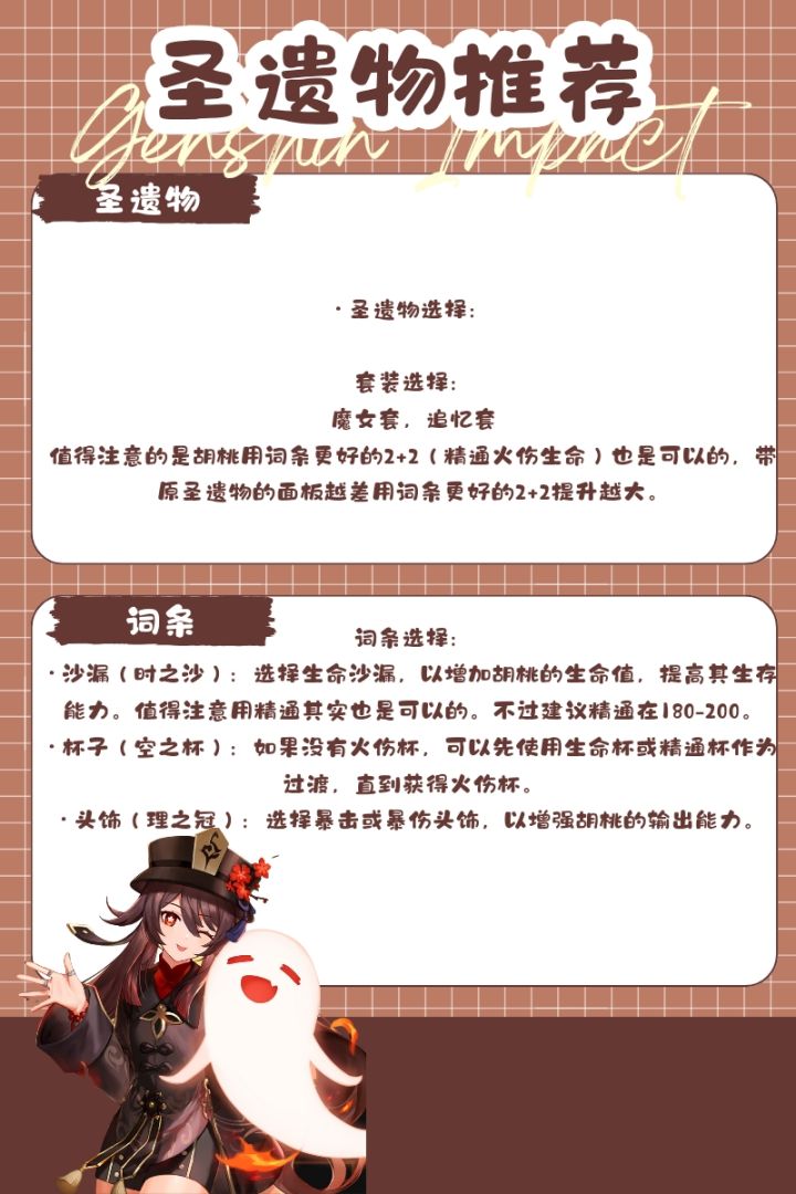 值得注意的是胡桃用词条更好的2+2(精通火伤生命)也是可以的,带原圣遗物的面板越差用词条更好的2+2提升越大。