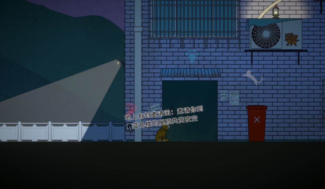 玩家在刚到达楼群区域时,可以看到地上有一封邀请函(图5),邀请玩家前往蓝色楼的楼顶(图6为线路)观看夜空,在这里玩家可以看到一颗流星(图1),并解锁成就 “愿它划破无尽长夜,将思念带至你身旁”,其表达的是主角对妻子的思念,也给予了主角一种精神寄托,这个成就是完成好结局的必要条件。