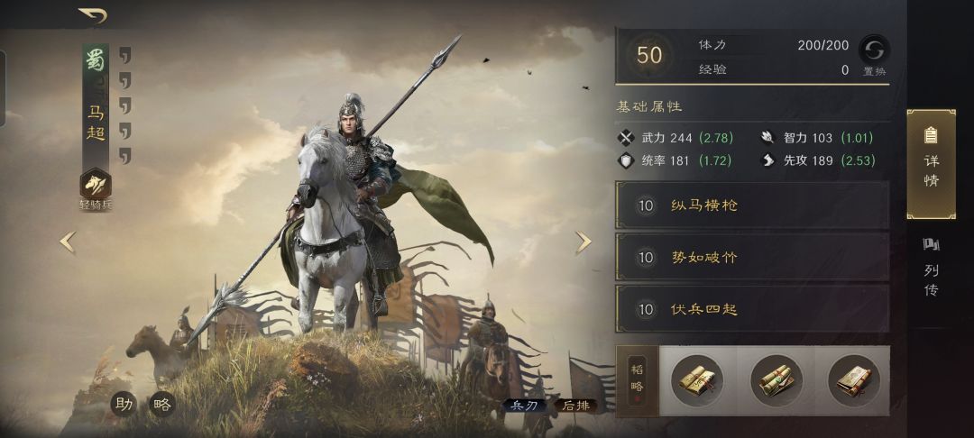 轻骑兵特性疾驰,专精点亮纵马驰矛。