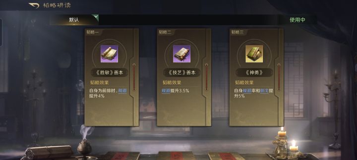 韬略库:胜战善本+铁骑令(专属)+敌阴善本。