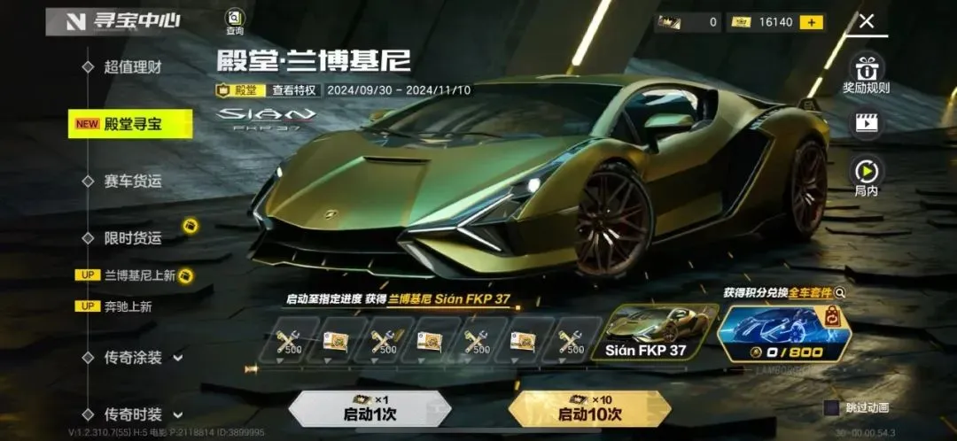 (5)赛车手们点满8格进度后,还可以继续寻宝积攒兑换币,积攒的兑换币可以用来兑换兰博基尼 Sián FKP 37专属限定全车套件。