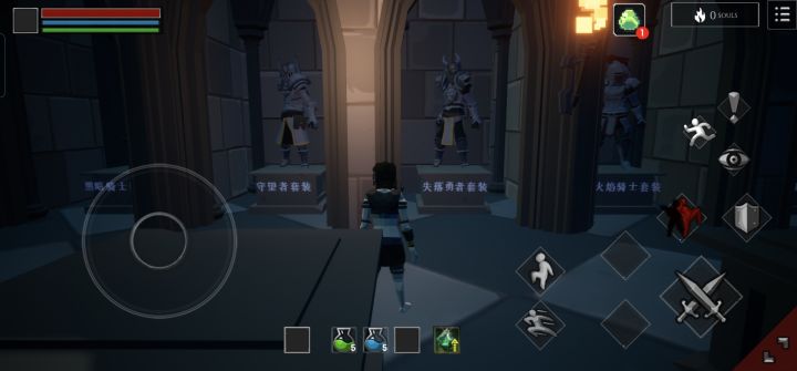 1、开局进游戏从大熊获得资源后全部扔炉子里合成,给的魂全部在商店里刷新买火焰骑士部件,接着也全部炉子里合成,最终获得的装备可以强化后丢在边上房间的展示柜里。接着去石像存档保存。