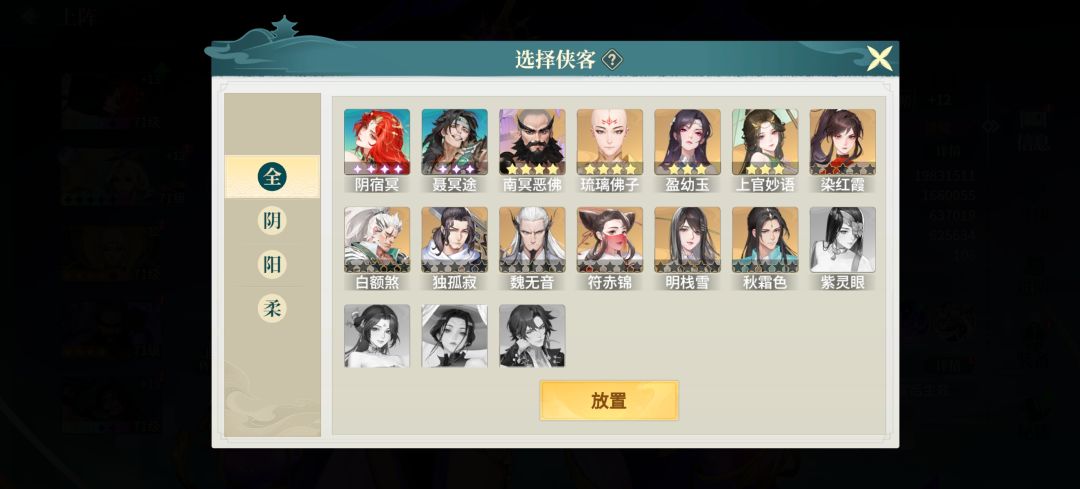 - 放置的两名侠客达到绝世5星,激活3级连横技能
