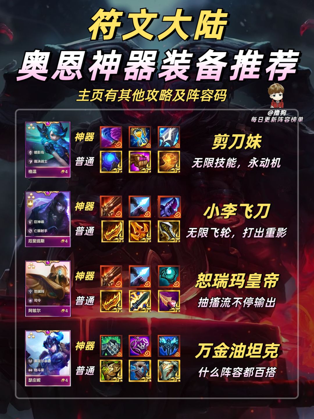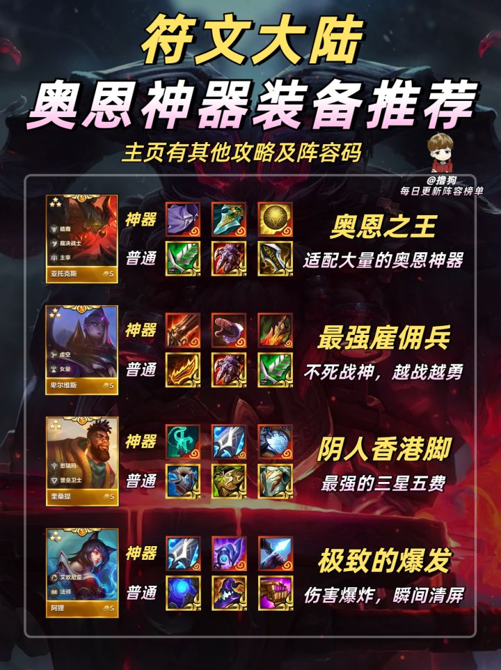 公众号爱下棋的撸狗有全部阵容攻略及代码,每日更新阵容榜单,下棋攻略