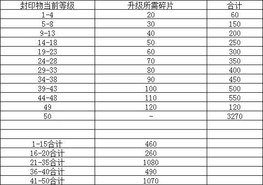 封印物最高50级,满级之后,多余的碎片可以通过封印物界面的碎片背包来进行出售换取钻石,c级10钻石,b级20钻石,a级30钻石,s级50钻石。