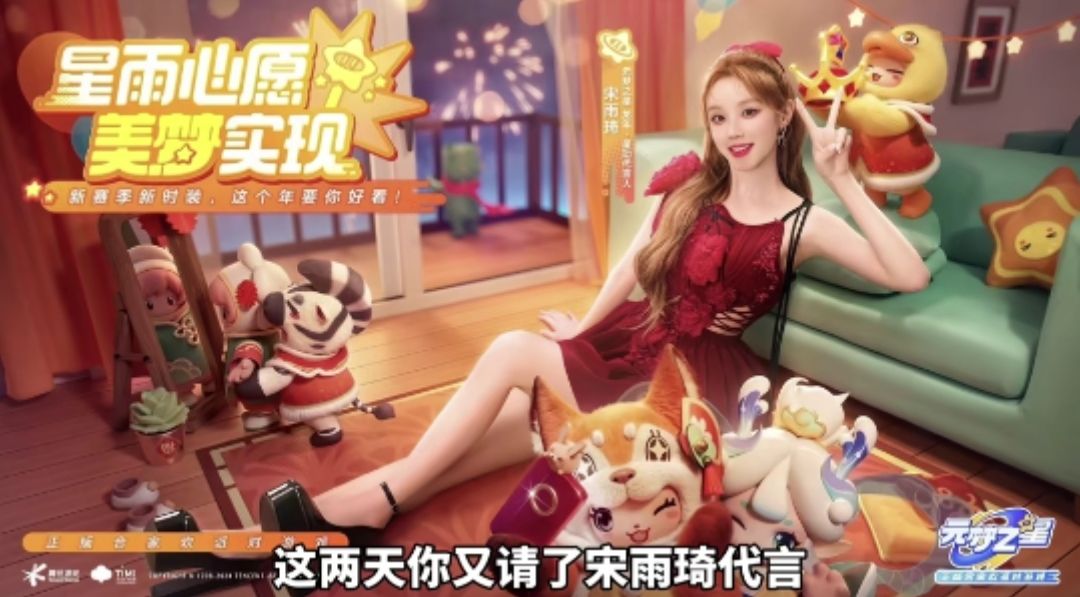 2. 宋雨琦:2024年1月26日,官宣其成为《元梦之星》龙年·星动代言人。